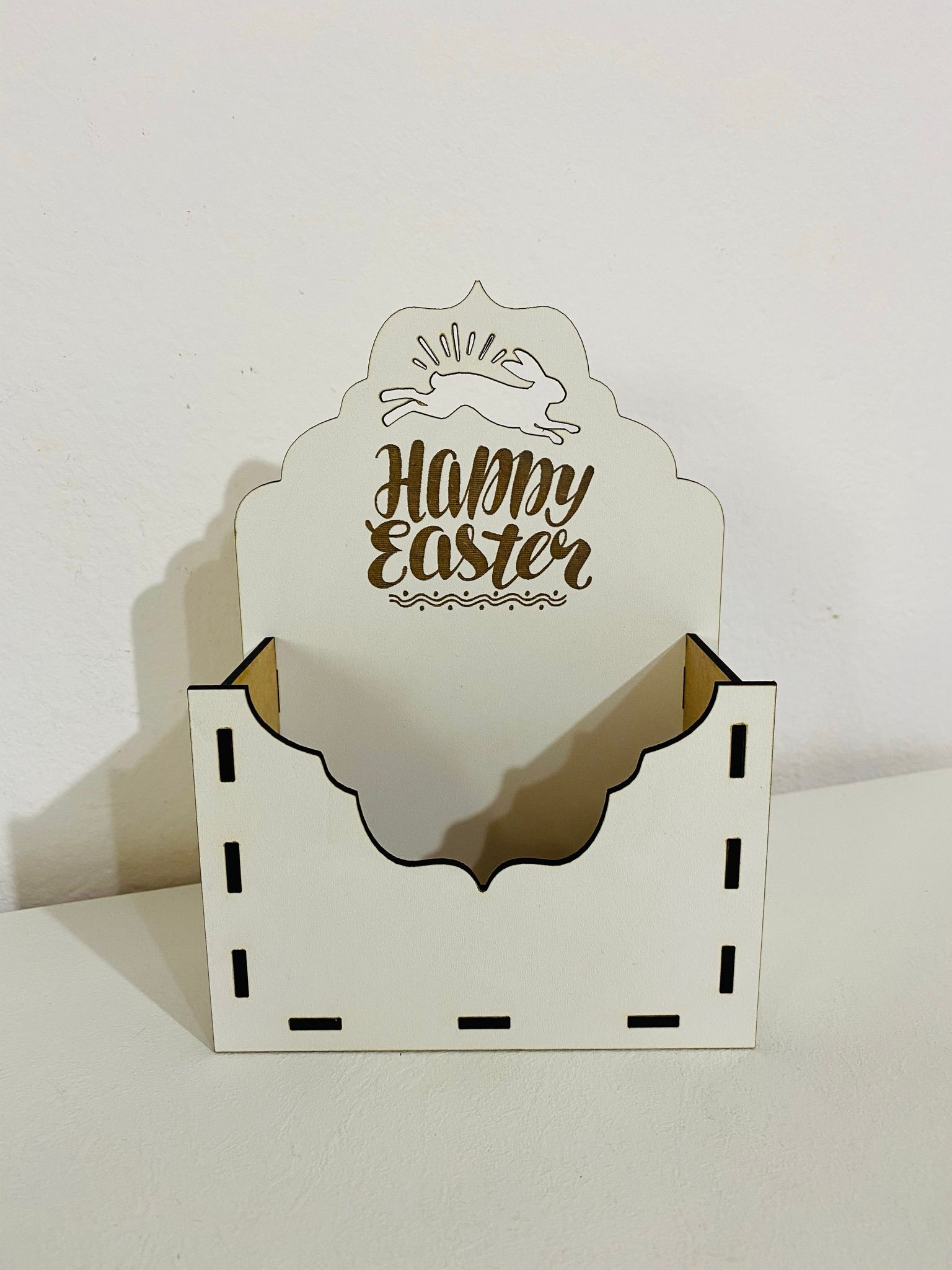 Cutie din lemn forma de plic model cu iepuras decupat ” Happy Easter “